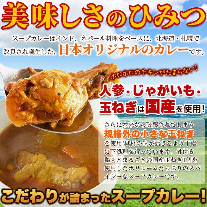 ゴロッと玉ねぎと骨付きチキンの スープカレー 辛口 2人前(260g×2袋) カレー好き必見!!簡単レンジでチンするだけで本格スープカレーがお手軽にお楽しみいただけます!【代引不可】