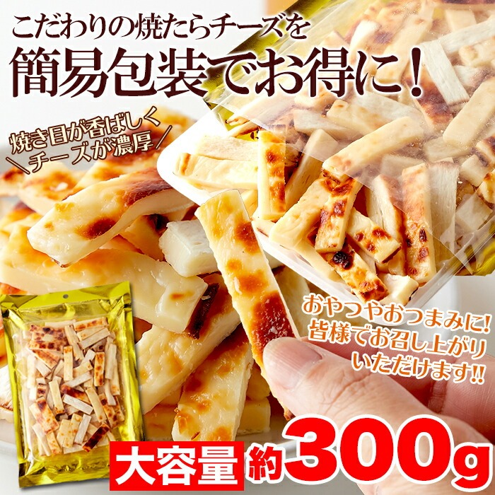 北海道産 チェダーチーズたっぷり使用!! 焼きたらチーズ 300g チータラ おつまみの定番たらチーズを、こんがり焼き、さらに濃厚な味になりました!やみつき必至!!【代引不可】
