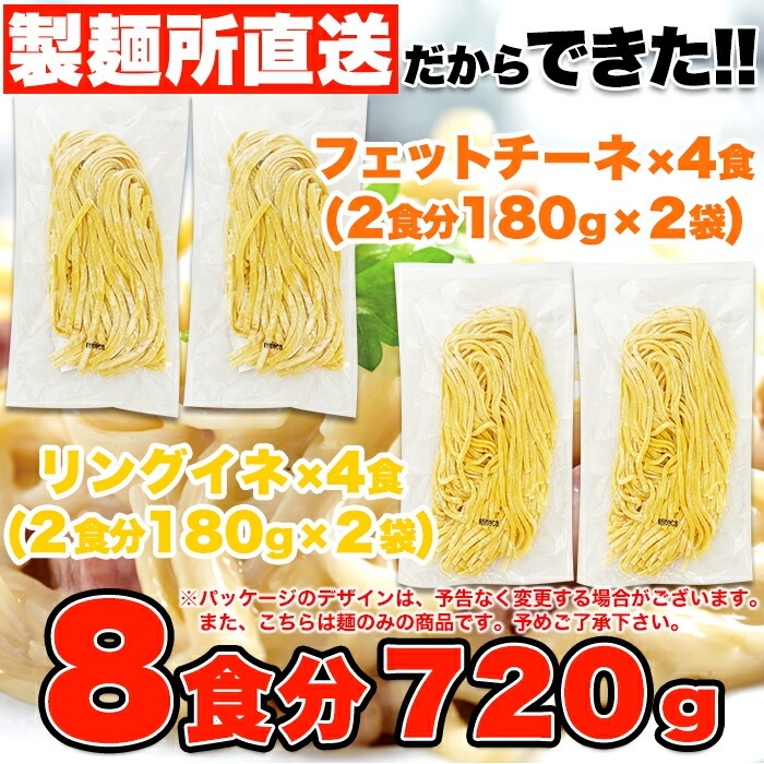 ■内容量:720g(フェットチーネ180g×2袋、リングイネ180g×2袋)
