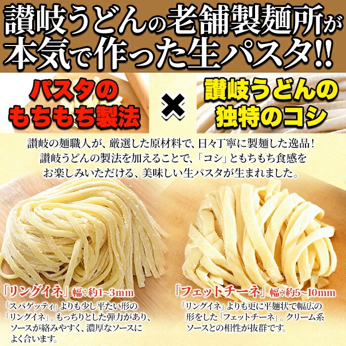 生パスタ 8食セット 720g(フェットチーネ180g×2袋・リングイネ180g×2袋) もちもちパスタに讃岐うどんのコシを融合!!新食感の本格生パスタをご自宅で♪【代引不可】
