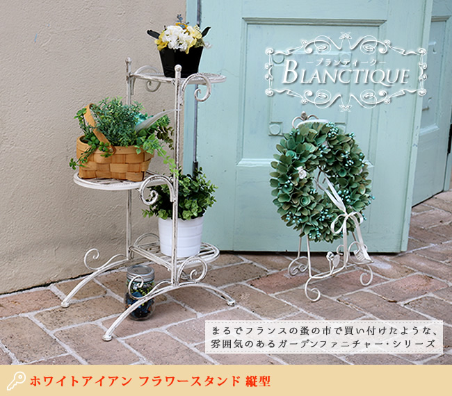 ブランティーク ホワイトアイアンフラワースタンド 縦型 アンティーク モダン スタイリッシュ シンプル フラワースタンド 花台 プランター ガーデン インテリア 家具 天然 おしゃれ カフェ 北欧 【代引不可】