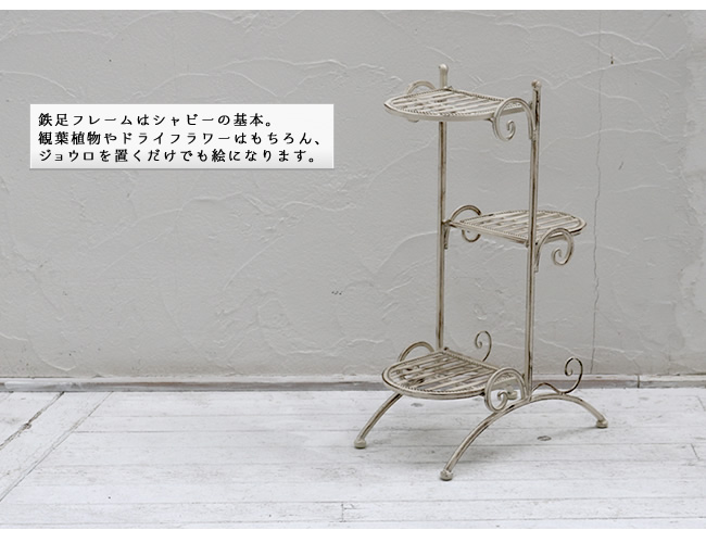 ブランティーク ホワイトアイアンフラワースタンド 縦型
