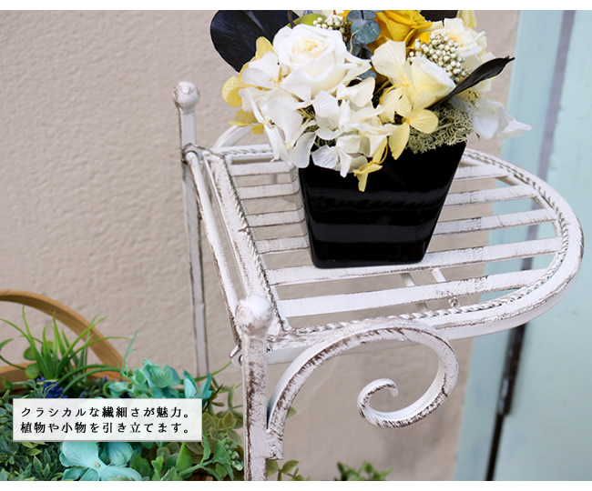 【ブランティーク ホワイトアイアンフラワースタンド 縦型】