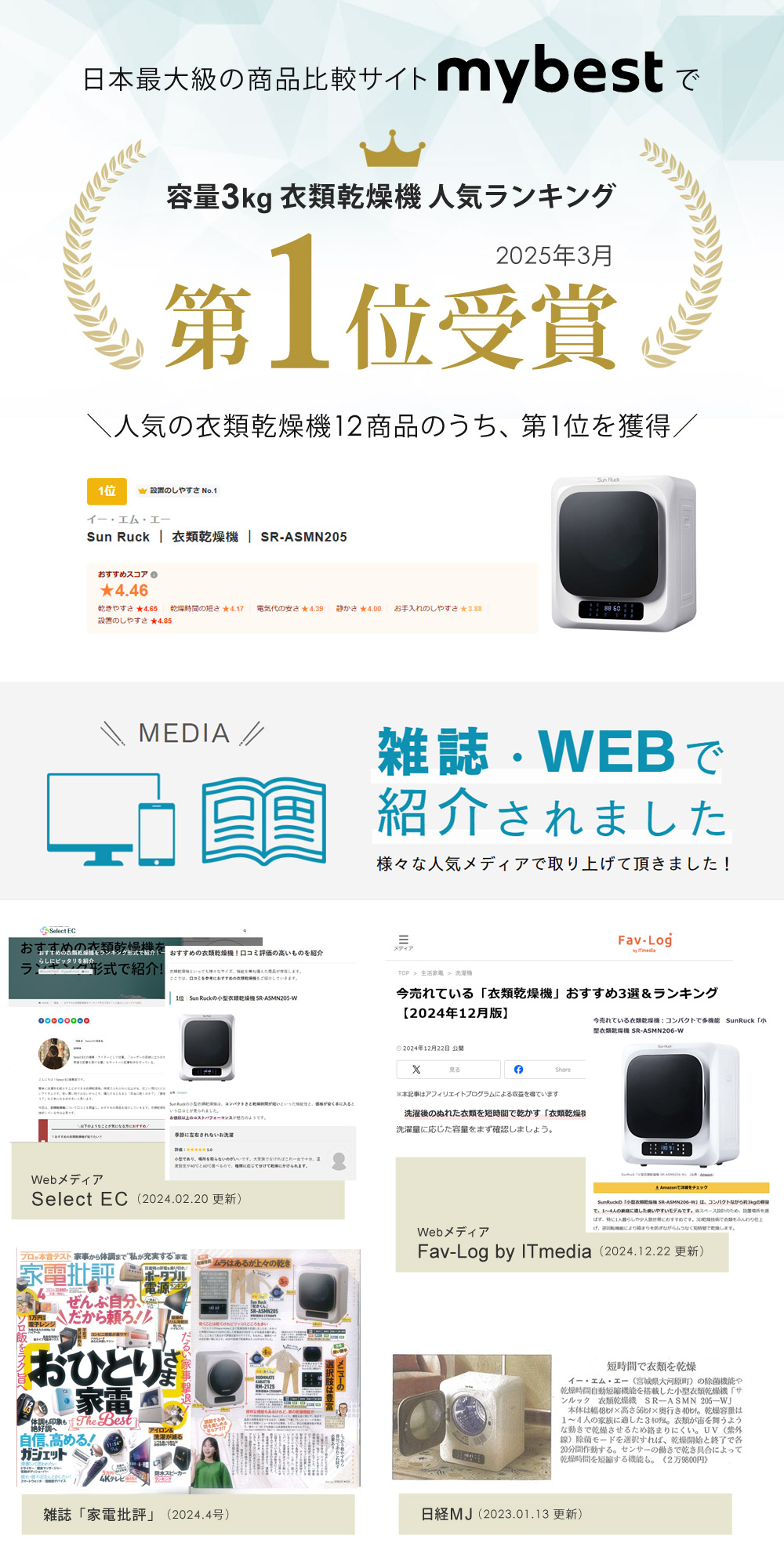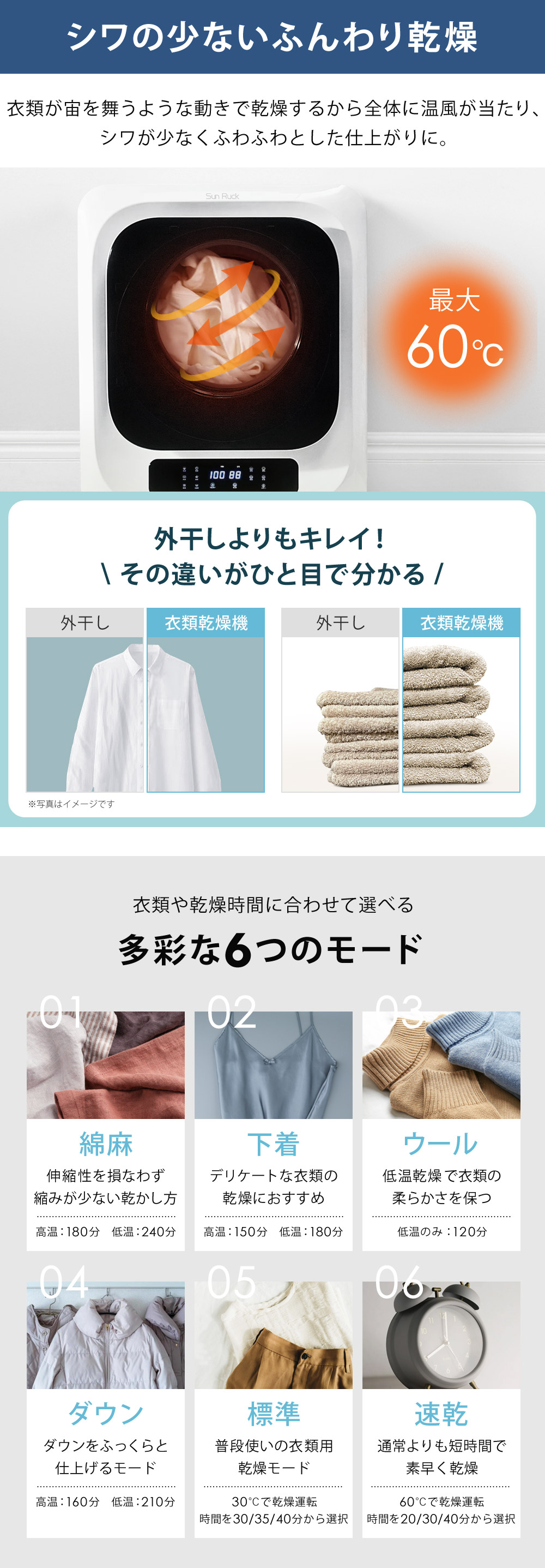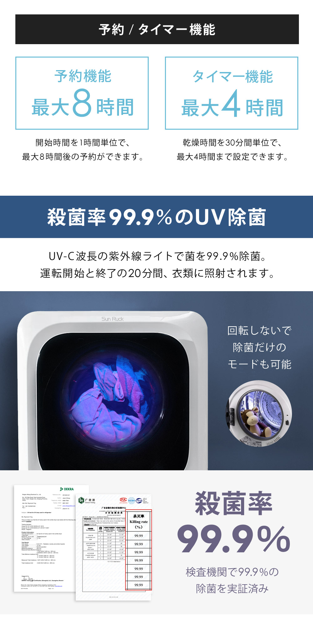 衣類乾燥機 小型 3kg UV除菌 脱臭 自動短縮機能 工事不要 タッチパネル 静音 ドラム式 タイマー 絡まり防止 小型衣類乾燥機 大容量 家庭用 洗濯物 子供服 タオル シャツ ダウン 高温 乾燥 梅雨対策 新生活 SunRuck サンルック SR-ASMN206 乾きくん[ホワイト]