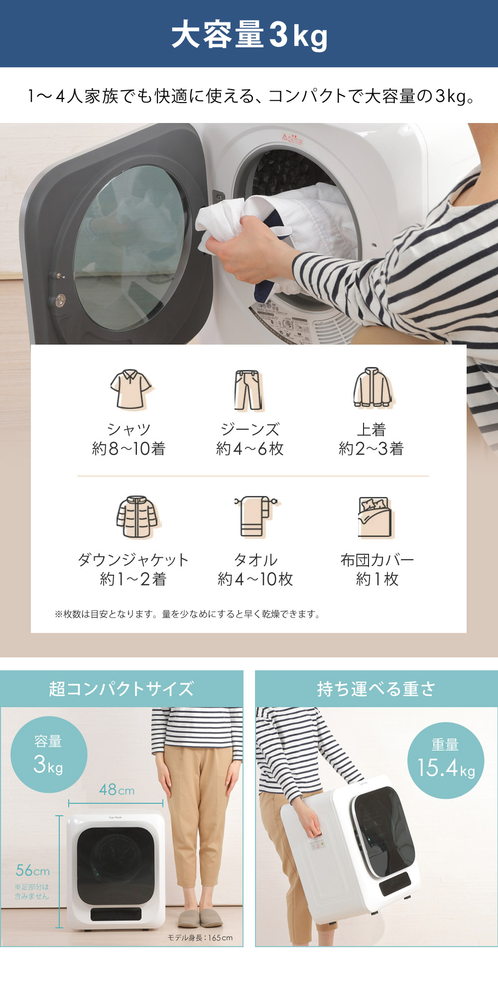 検索キーワード: 衣類乾燥機 ミニ乾燥機 3kg 小型 タッチパネル ドラム式 ドラム 洗濯 洗濯物 服 洋服 タオル ジーンズ ズボン 上着 ジャケット ダウンジャケット シャツ 時短 時間短縮 エコ 省電力 省エネ UV 除菌 梅雨 湿気 花粉 春 夏 秋 冬 オールシーズン 普段着 ウール ダウン 家庭用 引っ越し 新生活