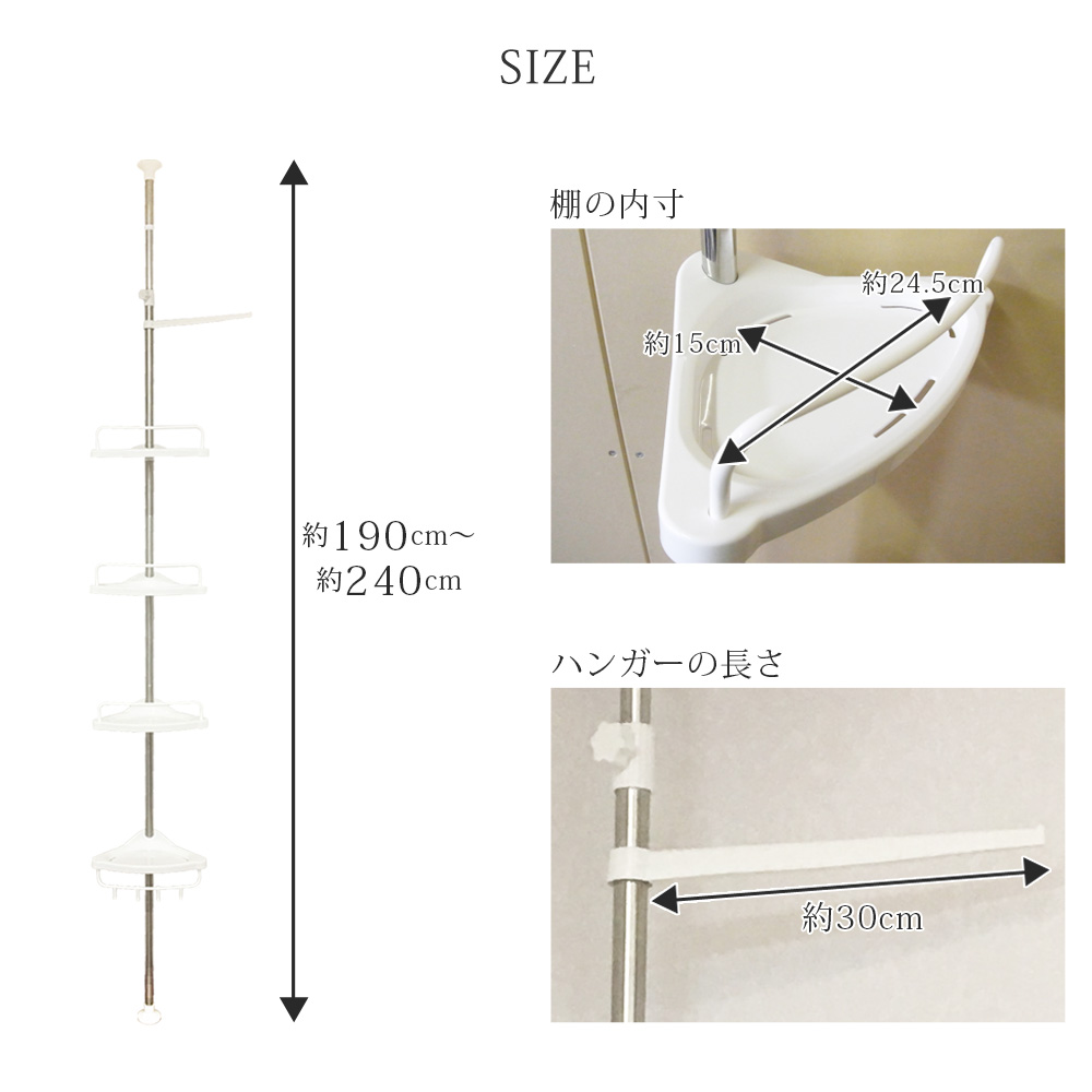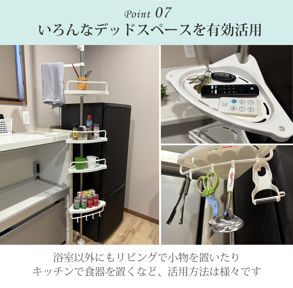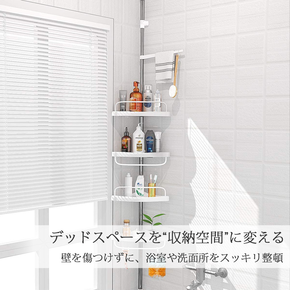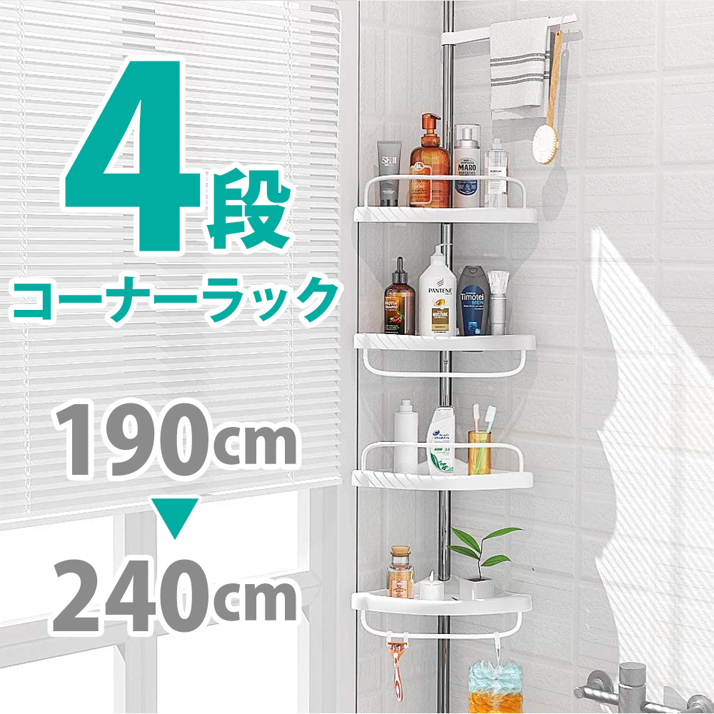 コーナーラック 4段 突っ張り つっぱり スリム キッチン トイレ バスルーム お風呂 浴室 洗面所 収納 高さ調節 伸縮 スリム 突っ張り棒 コーナーシェルフ バスラック シャンプーラック おしゃれ Sunruck カドラック