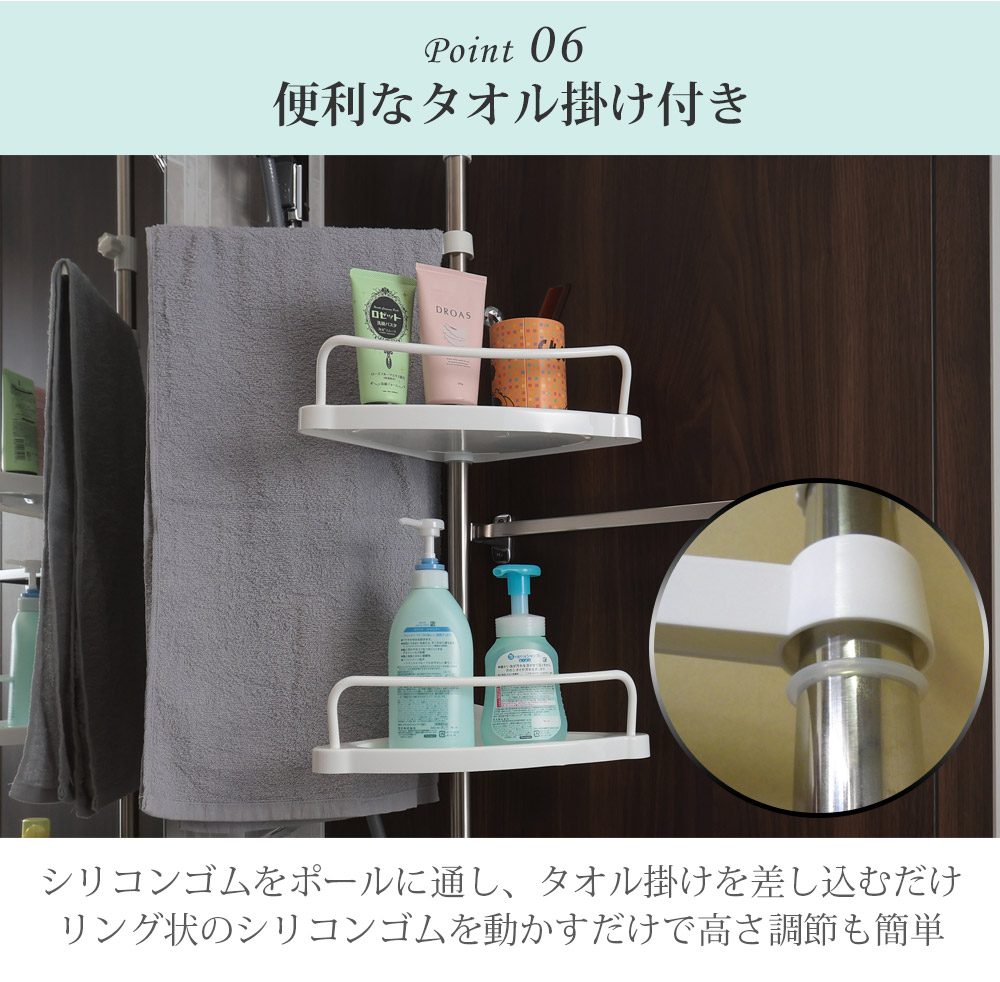 検索キーワード: ラック バスルーム 洗面台 ユニットバス キッチン お風呂棚 縦 棚 収納棚 バス用品 整理棚 浴室収納 タオルハンガー ハンガー付き リビング 寝室 お部屋 子ども部屋 一人暮らし 新生活 シンプル 整理 整頓 小物入れ デッドスペース 便利グッズ
