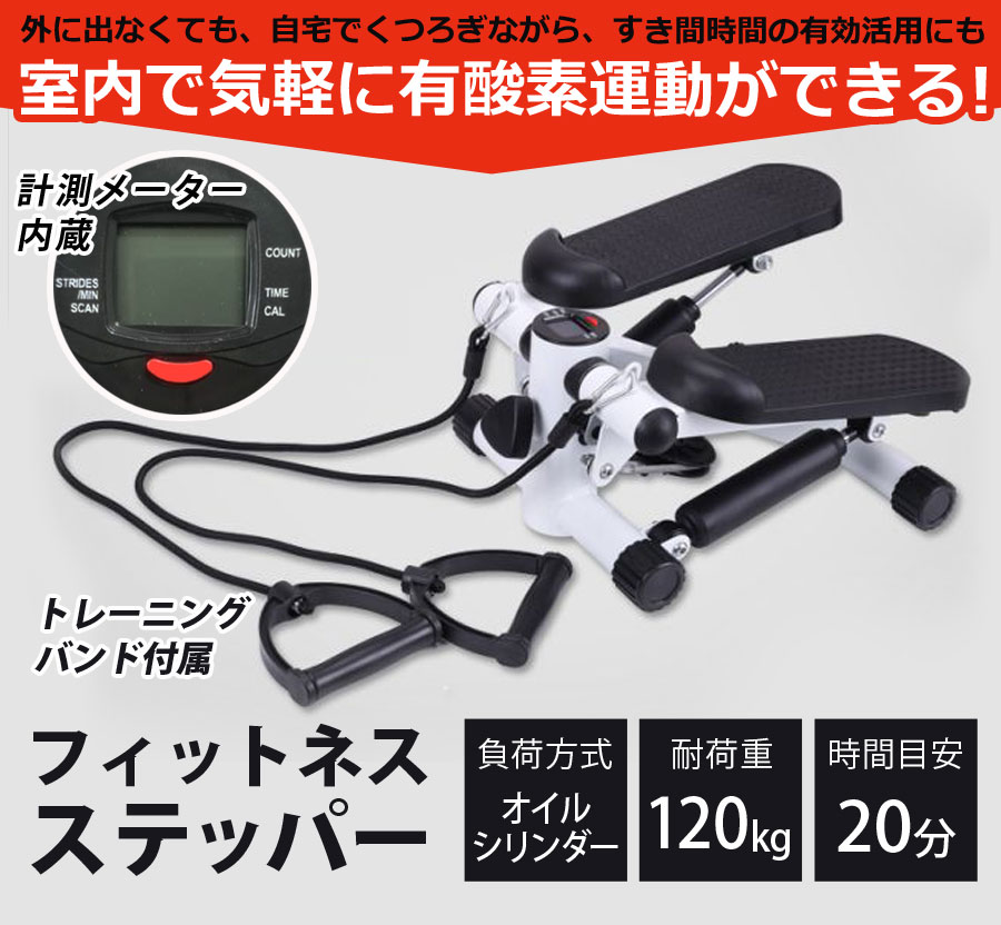 ステッパー フィットネス 静音 負荷調整 トレーニングバンド付属 計測メーター 有酸素運動 室内運動 足踏み ダイエット エクササイズ 昇降運動 下半身 運動 室内 筋トレ ながら運動 SunRuck フットストンパー