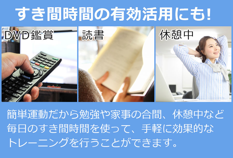 簡単運動だから勉強や家事の合間、休憩中など毎日のすき間時間を使って、手軽に効果的なトレーニングを行うことができます。