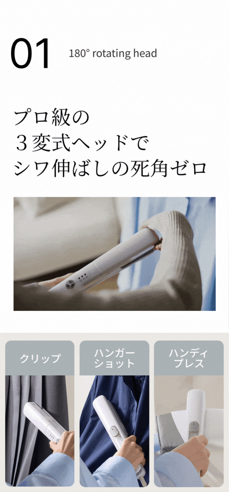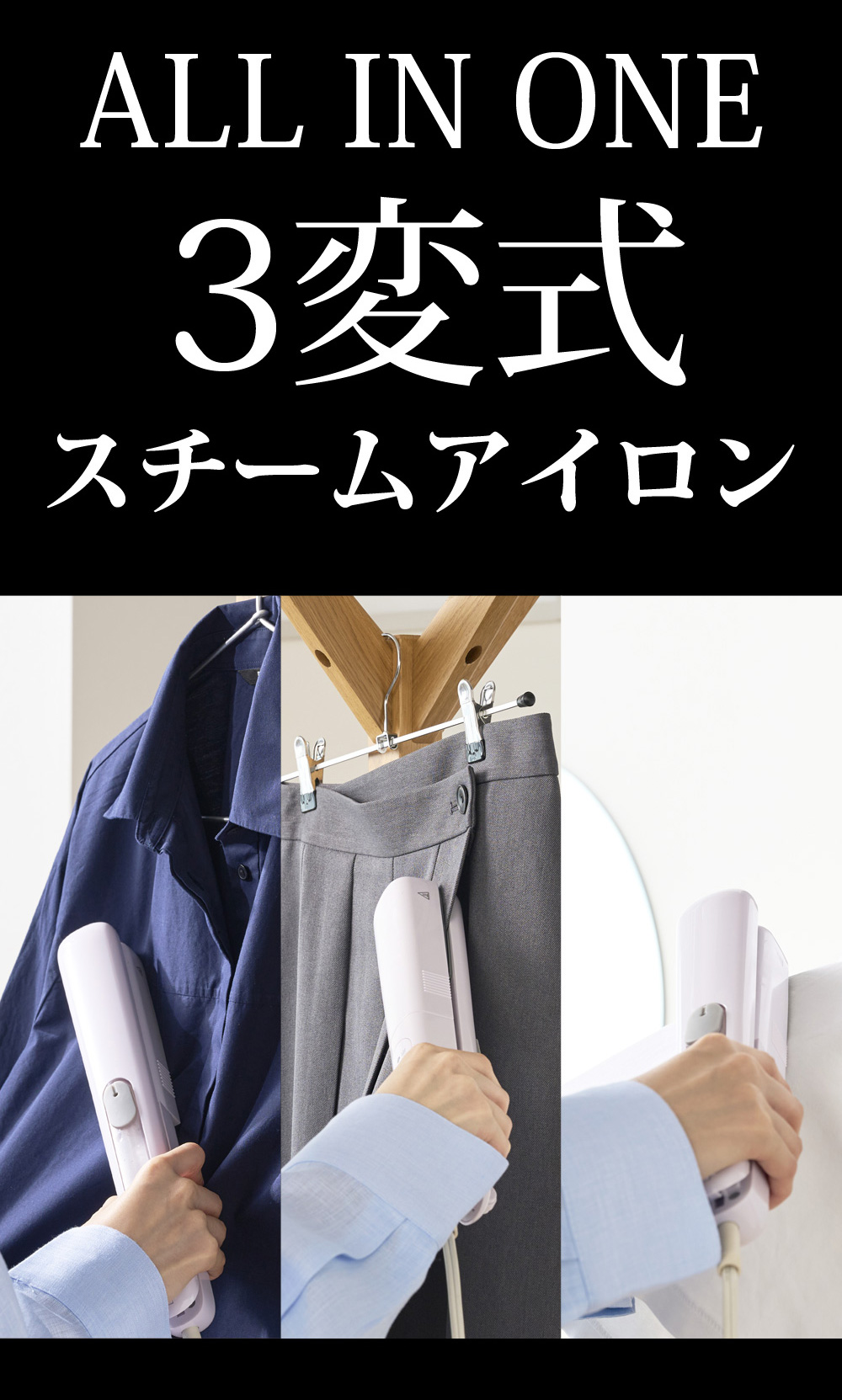 3変式ALL IN ONEヘッドで衣類のシワ取りを1台ですべて解決。