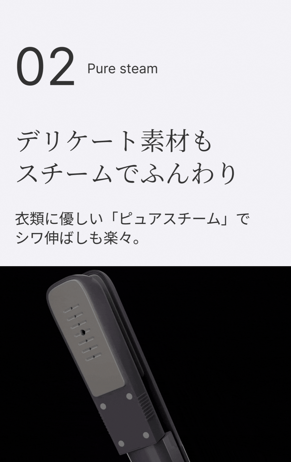 衣類に優しいピュアスチームで、お気に入りの服を美しくリフレッシュ。