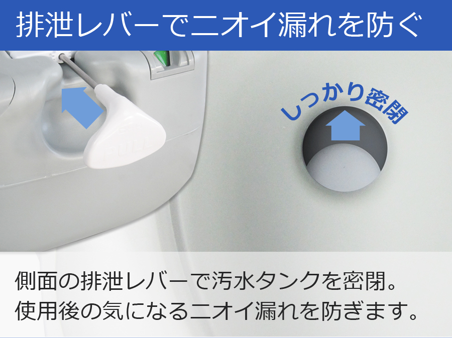 側面の排泄レバーで汚水夕ンクを密閉。 使用後の気になる二オイ漏れを防ぎます。