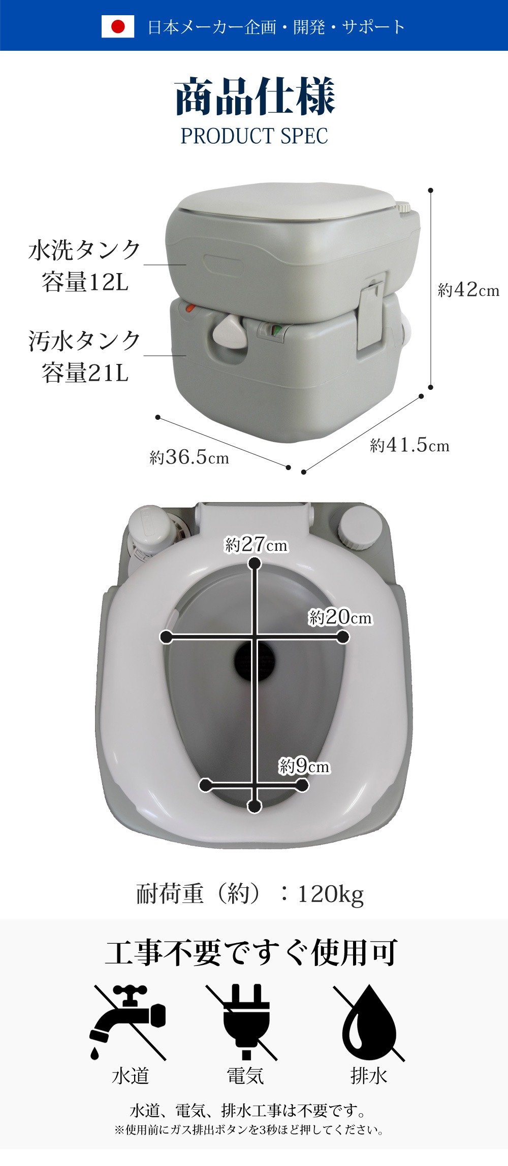 汚水タンク容量:21リットル