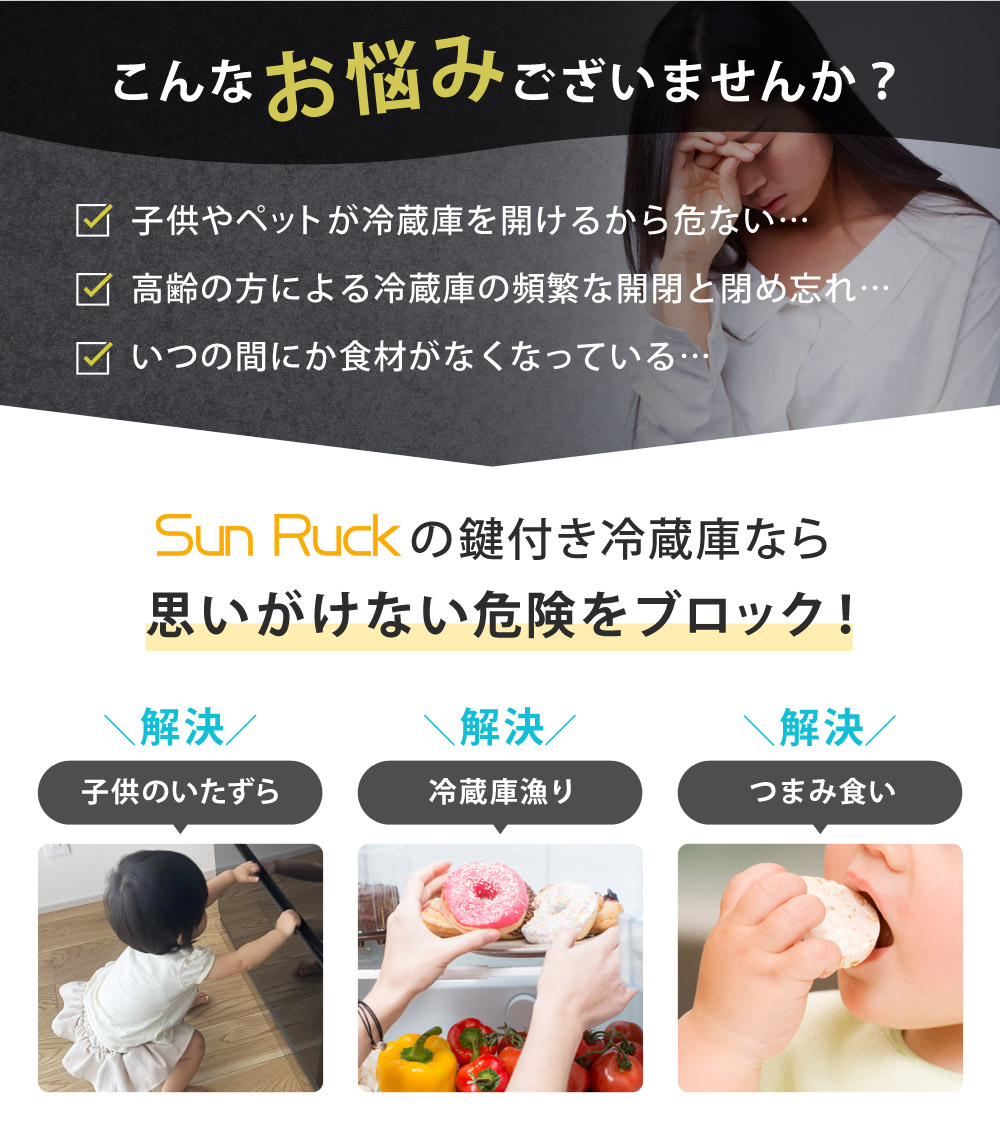 SunRuckの鍵付き冷蔵庫なら、思いがけない危険をブロック!