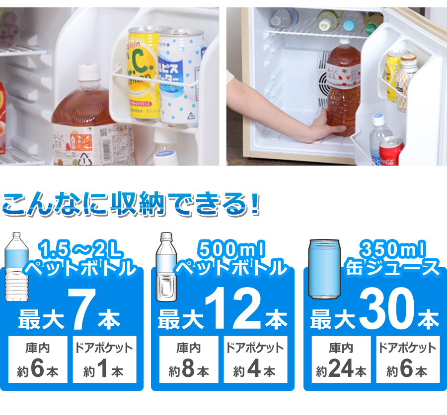 1人暮らしにもジュース用の冷蔵庫としても使える1ドア冷蔵庫。