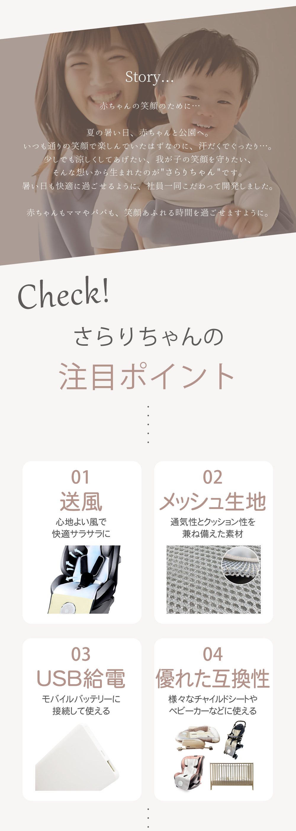 赤ちゃんに優しい送風で