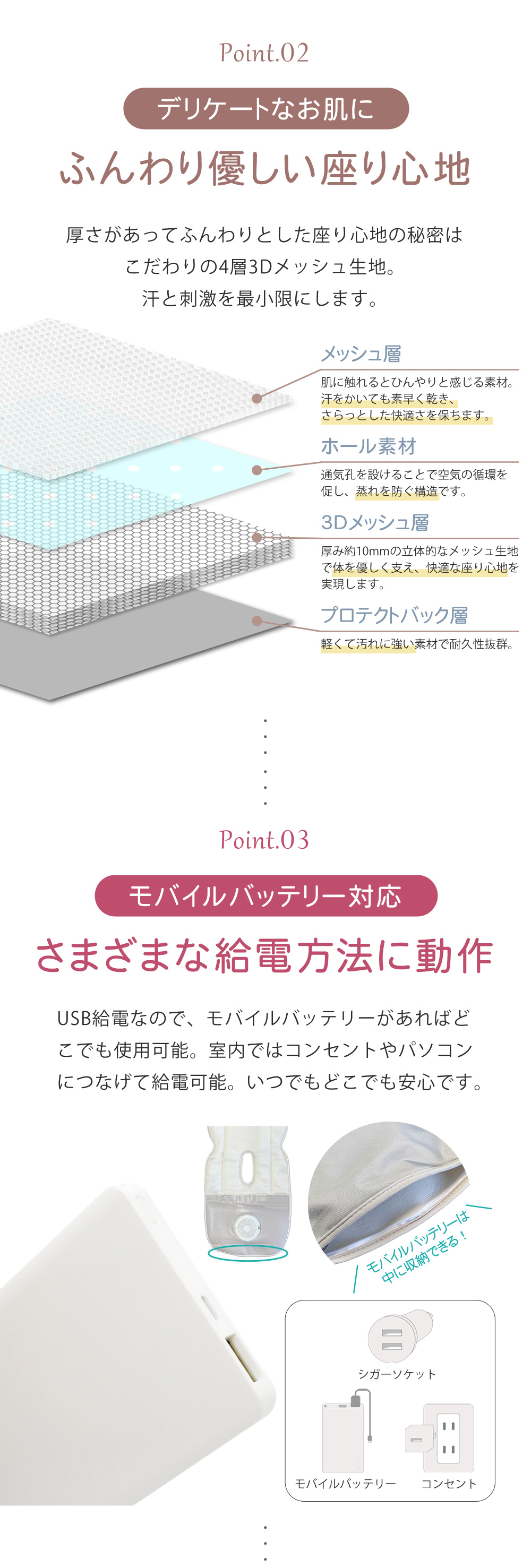 厚さがあってふんわりとした座り心地の秘密はこだわりの4層3Dメッシュ生地。