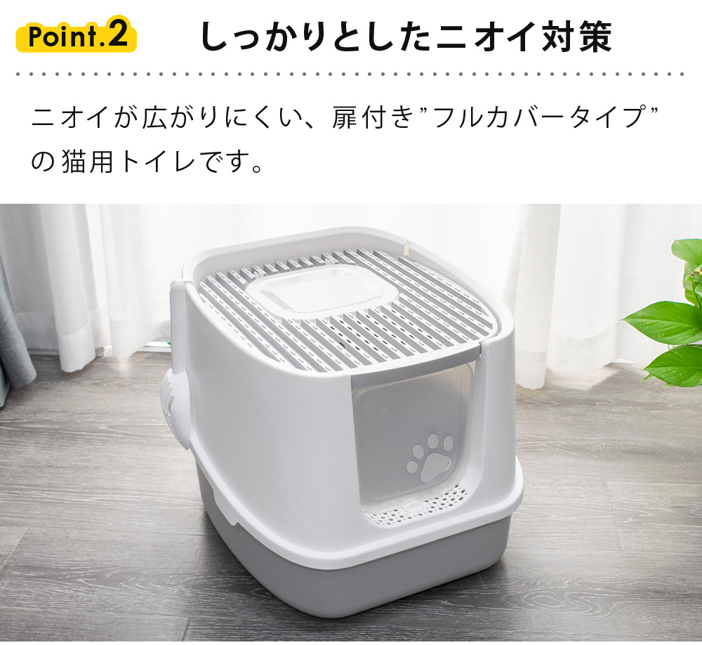 ニオイが広がりにくい、扉付き”フルカバータイプ”の猫用トイレです。