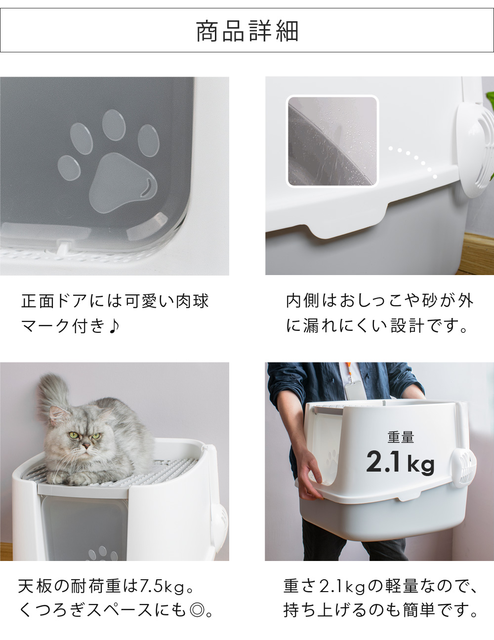 検索キーワード:キャットトイレ 猫トイレ ネコトイレ ねこトイレ 上から 横から トイレ本体 フタつき 蓋つき 猫砂 散らかりにくい 飛散防止 消臭 臭い対策 ニオイ対策 猫用トイレ カバー付き ペットトイレ 横 上 出口 2ドア ツードア ペット用品 キャット用品 猫用 キャット おしゃれ オシャレ 2ドアネコトイレ 2ドア トイレ 大型トイレ 子猫 子ネコ 大型猫用 大型ネコ用 小型猫用 小型ネコ用 本体 コンパクト スコップ フィルター カバー 隠す 習性 システム ペット ペットグッズ ペットトイレ 猫グッズ キャットグッズ 大きい 簡単組立 丸洗い 衛生 消臭 猫トイレ本体 猫用トイレ本体 ネコトイレ本体 ネコ用トイレ本体 キャットトイレ本体