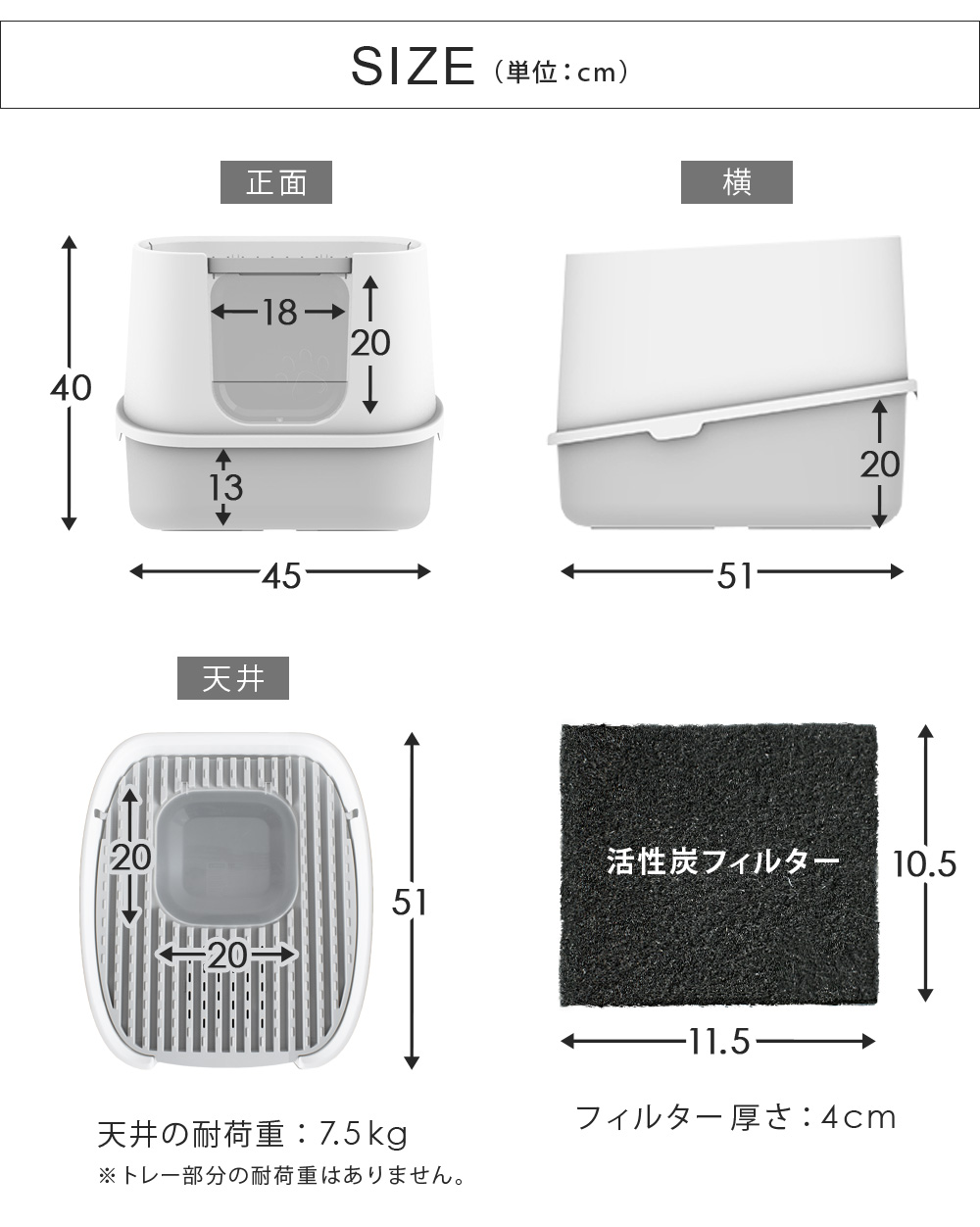 猫ちゃんが快適にトイレと砂かきができるよう、広々とした設計になっています。