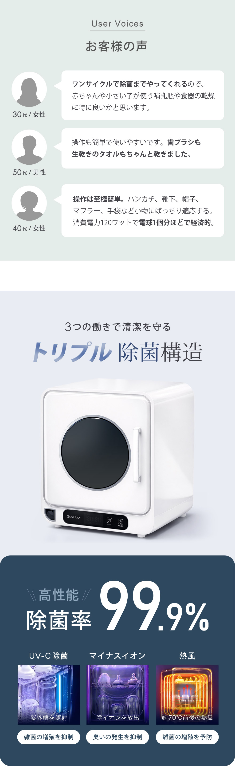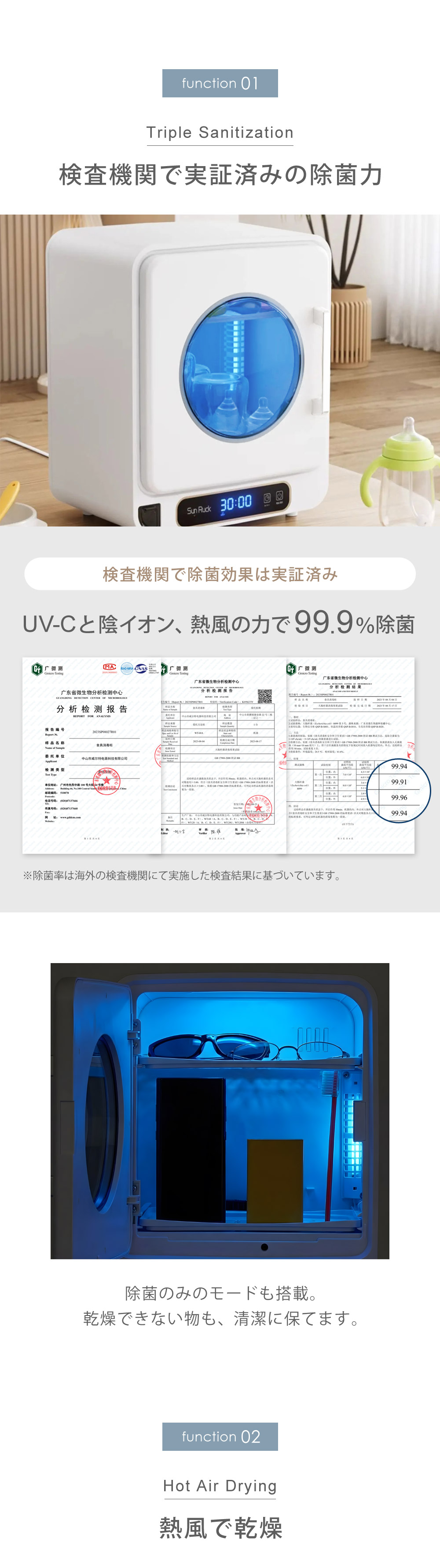 熱風乾燥とUV除菌で、清潔&しっかり乾燥。
