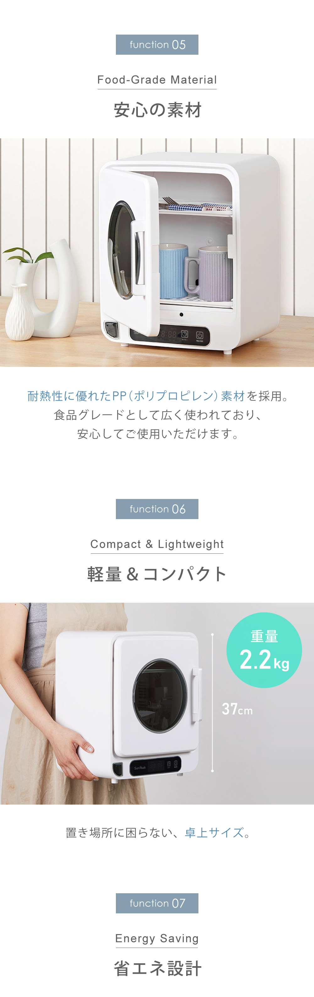 除菌のみのモードも搭載。乾燥できない物も、清潔に保てます。