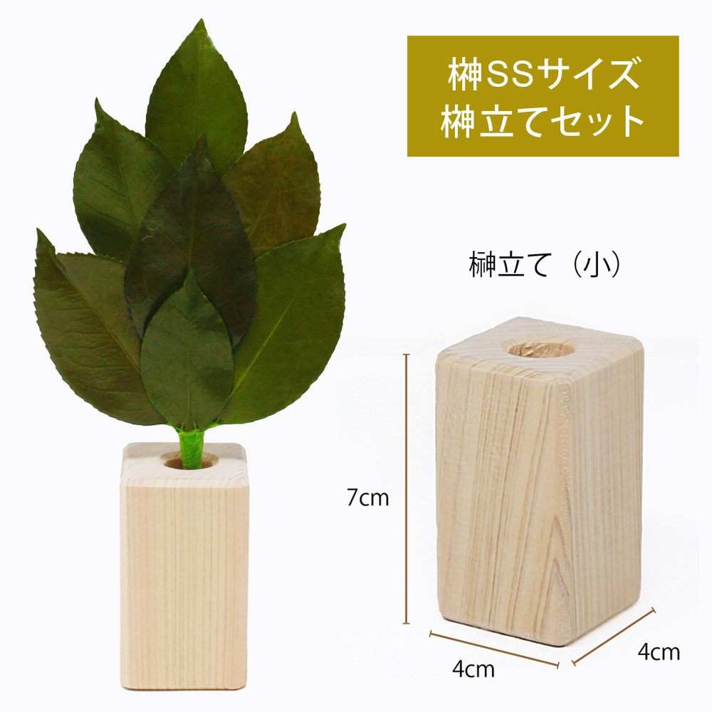 榊SSサイズ 2本セット 榊立て付き プリザーブド加工 榊 椿葉 神棚用 神具 水やり不要 ST-001 【代引不可】