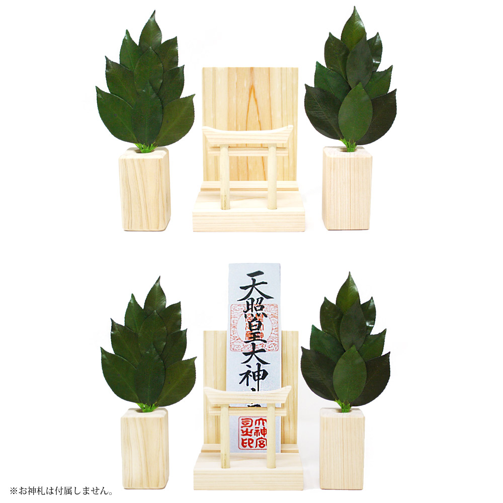 鳥居付き神棚 セット 角榊立て ミニS榊 小 プリザーブド加工 神具 コンパクト 小型 日本製 ST-033 【代引不可】