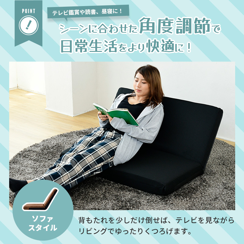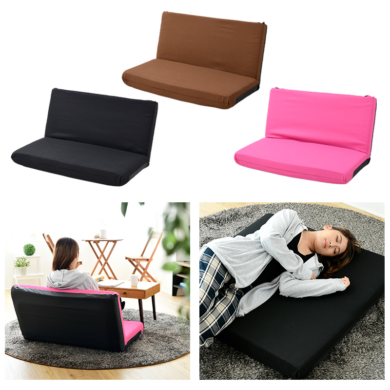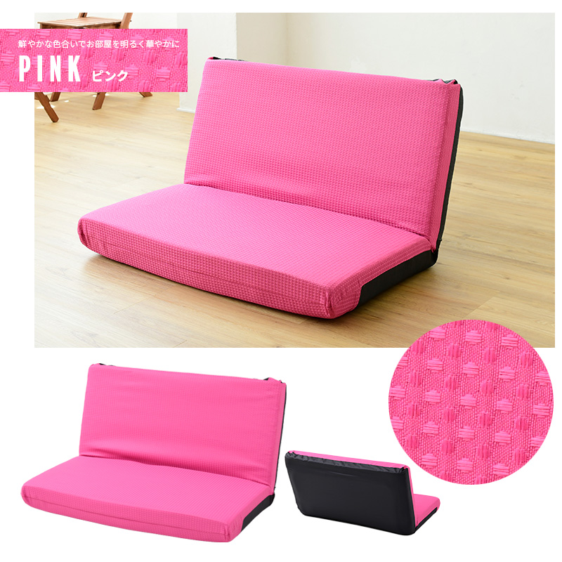 リクライニングフロアソファ 日本製 座椅子 コンパクト シンプル 昼寝 ごろ寝 7段階 リクライニング はっ水 薄型 1人用 2人用 SY009[ピンク]