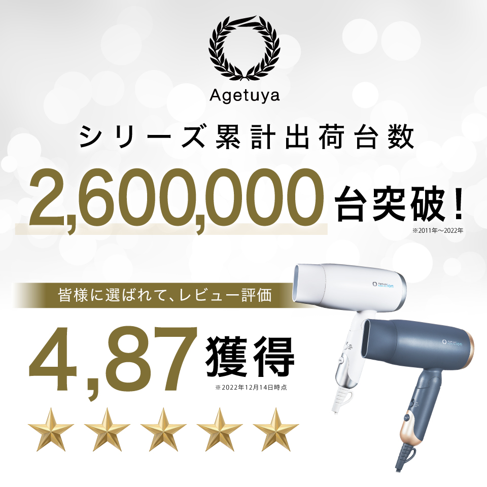 ヘアドライヤー 大風量 速乾 マイナスイオン AGETUYA アゲツヤ SUPER RICH ION AG-0003 軽量 コンパクト 冷風 COOL 風量調節 3段階 スーパーリッチイオン ヘアードライヤー 折りたたみ式 ドライヤー CX00-0870[グレー]