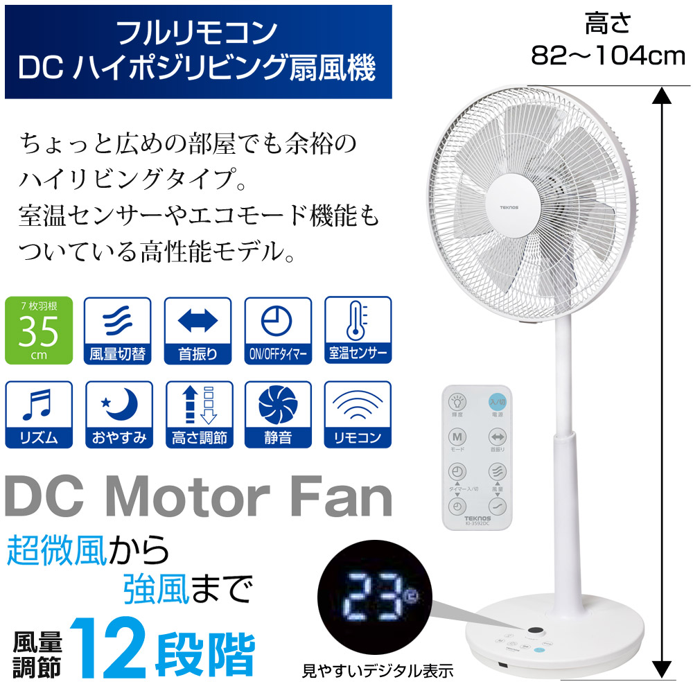 DCモーター扇風機 ハイポジション扇風機 リビングファン デジタル表示 入切タイマー リモコン TEKNOS テクノス KI-3593DC