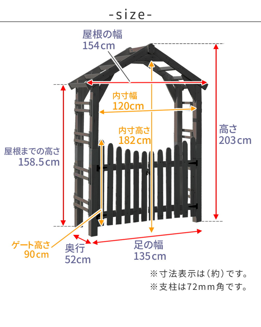 戸建ての入り口や、お庭の通路を華やかに彩る、おしゃれで使い勝手のいいゲート付三角アーチです。