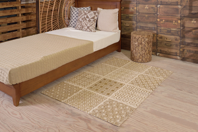 ラグ マット カーペット いくつもの幾何学模様を組み合わせたバンダナ風ラグ W90XD130 TTR-145BE 【LF】