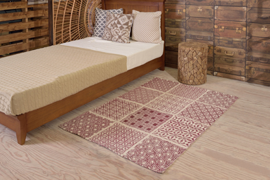 ラグ マット カーペット いくつもの幾何学模様を組み合わせたバンダナ風ラグ W90XD130 TTR-145RD 【LF】