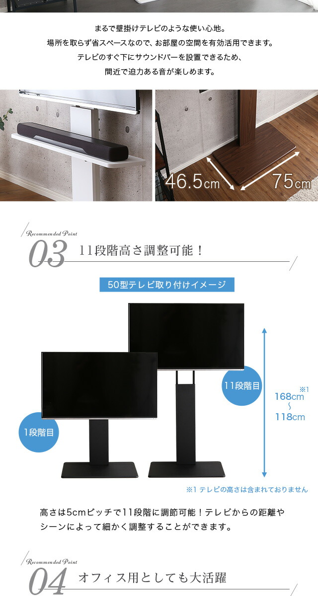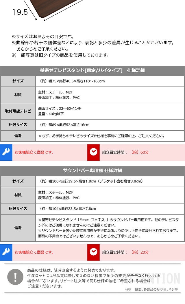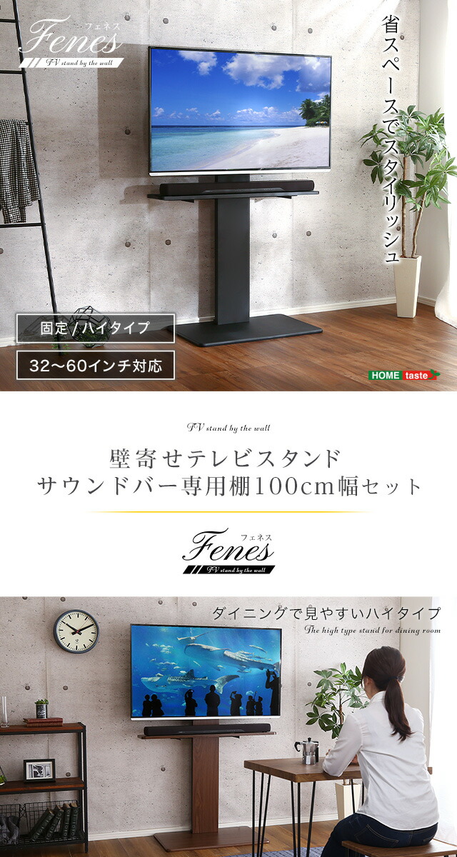 壁寄せテレビスタンド ハイ固定タイプ ロー・ハイ共通 サウンドバー 100cm幅 SET 【代引不可】[ブラック]