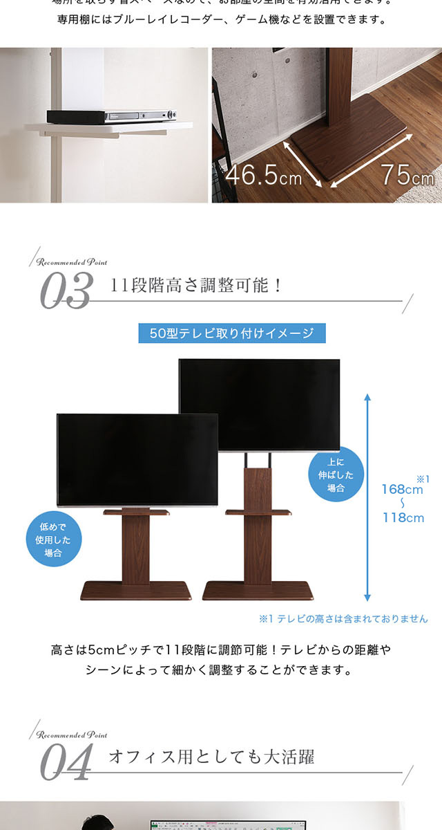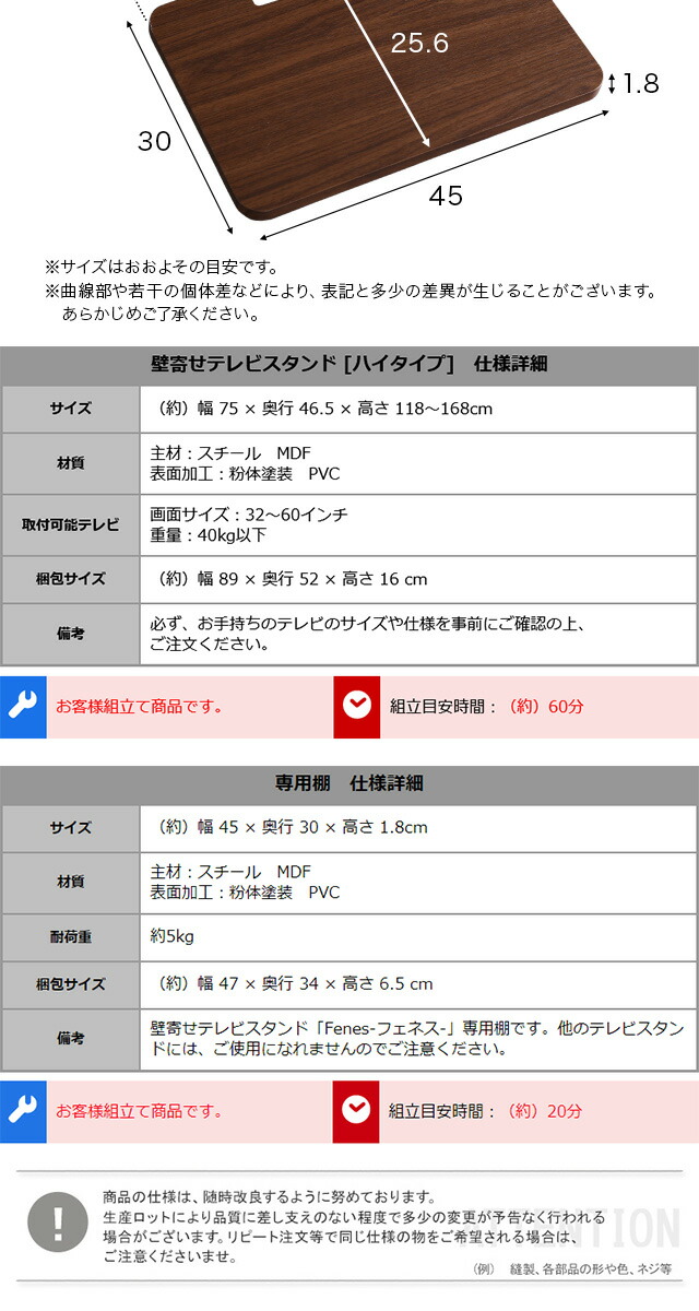 壁寄せテレビスタンド ハイ固定タイプ ロー・ハイ共通 専用棚 SET セット 32~60インチ対応 テレビスタンド 壁寄せ ハイタイプ 高さ調整 伸縮 棚付き テレビ台 おしゃれ 代引/同梱不可[ホワイト]