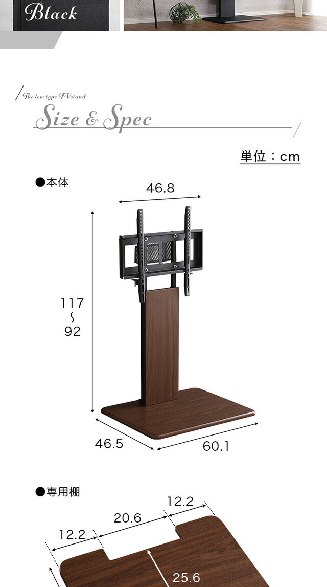 壁寄せテレビスタンド ロー固定タイプ ロー・ハイ共通 専用棚 SET セット 32~60インチ対応 テレビスタンド 壁寄せ ロータイプ 高さ調整 伸縮 棚付き テレビ台 おしゃれ 代引/同梱不可[ブラック]