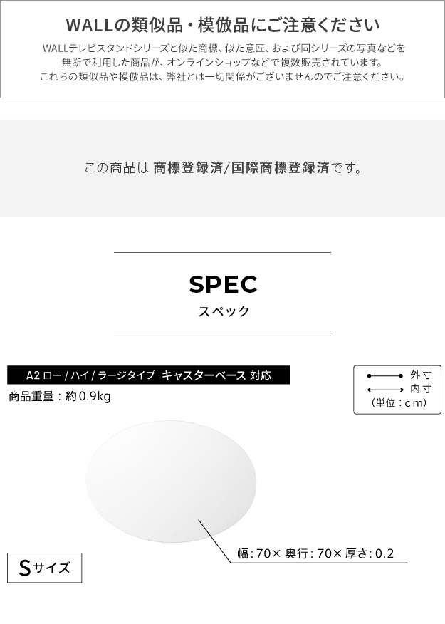 テレビスタンド WALLインテリア A2対応キャスターモデル用床保護マット サークルタイプ(Sサイズ) テレビ台 テレビスタンド 部品 パーツ フローリング 床保護パネル 床 シート 傷防止 キズ防止 汚れ防止 保護 WALLオプション EQUALS イコールズ