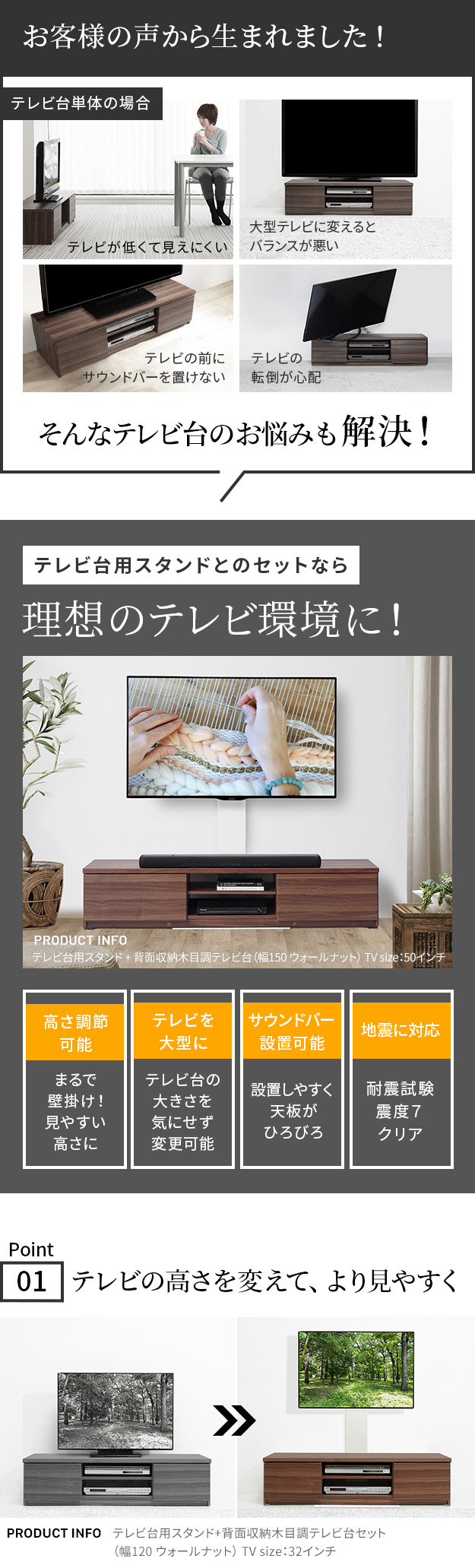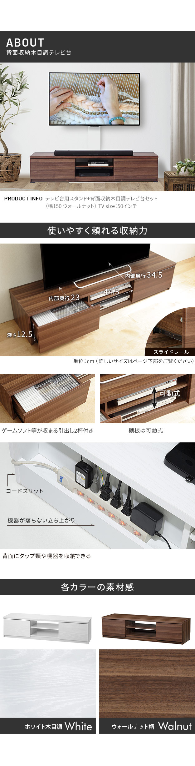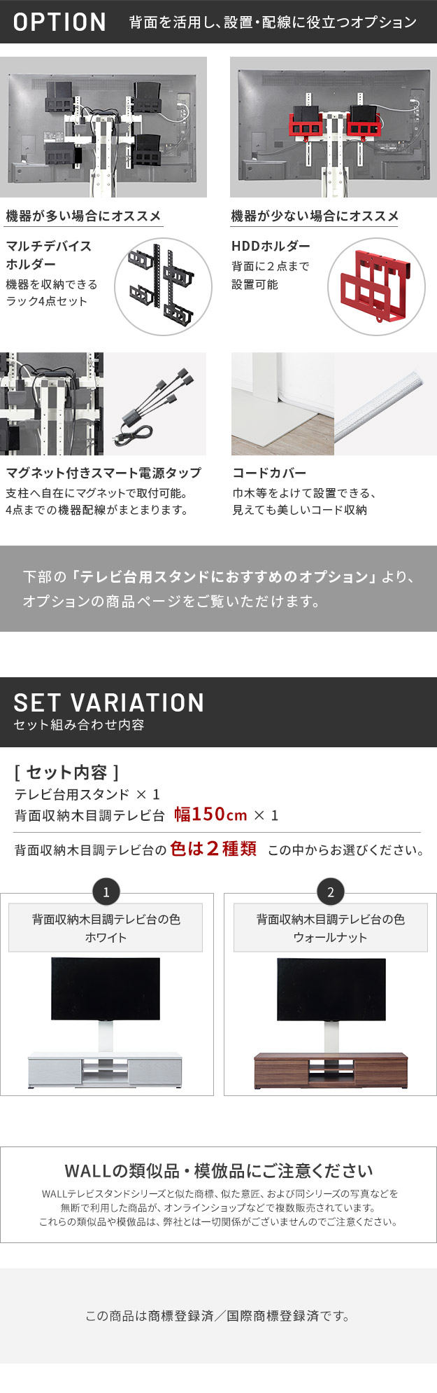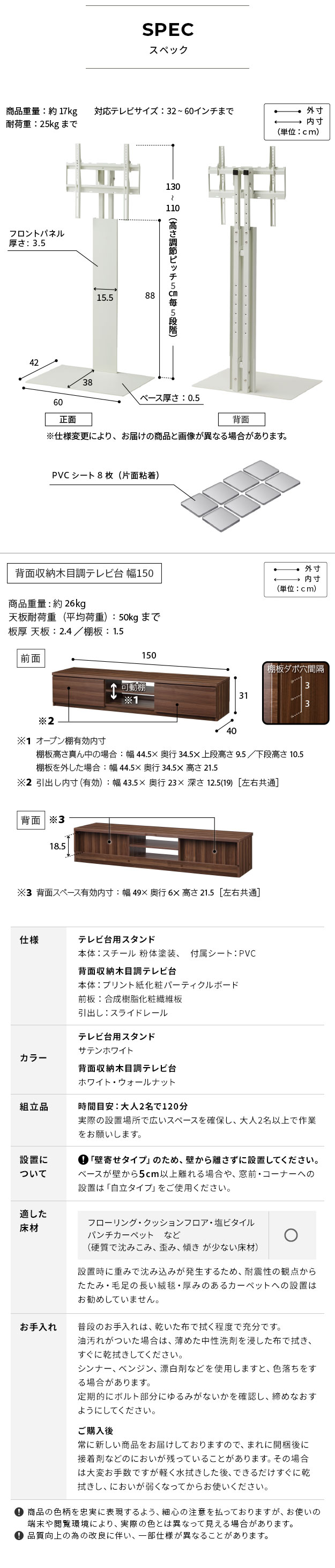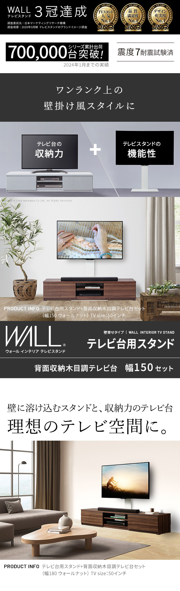 テレビ台用スタンド セット 幅150cm 32~60v対応 震度7耐震試験済み 背面収納 木目調 テレビ台 WALLインテリアテレビスタンド 壁掛け風 壁寄せテレビ台 TVスタンド テレビボード リビングボード ローボード 背面収納 EQUALS イコールズ[ウォールナット]