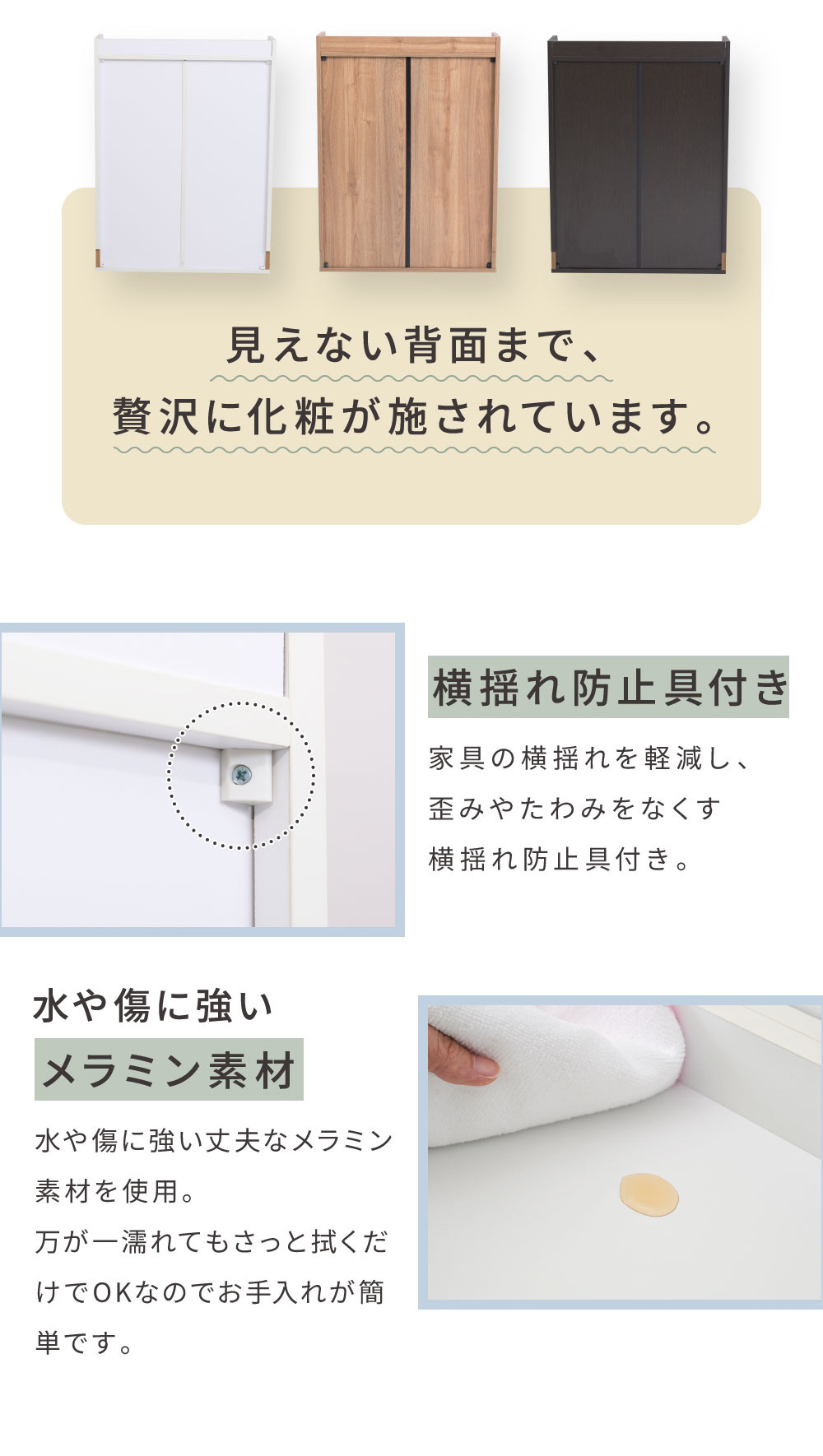 カウンター下収納 薄型 ミニ キャビネット リビングキャビネット 幅60 奥行22 高さ80 カウンター下 突っ張り 扉付き 収納 食器棚 小型 木製[ブラウン]