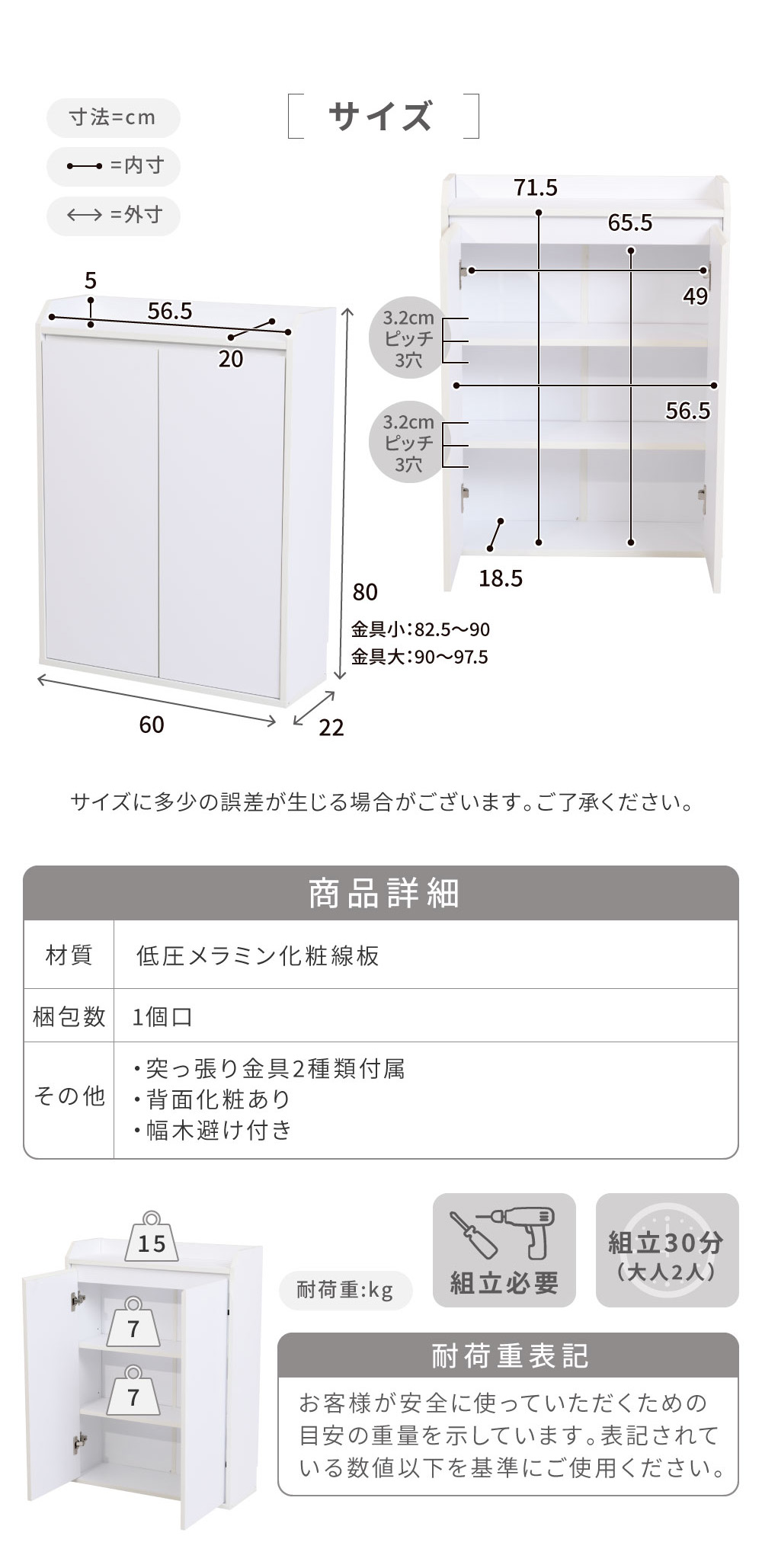 (扉内)幅56.5×奥行18.5×高さ65.5(最大71.5)cm