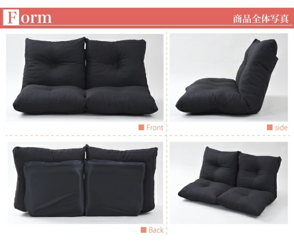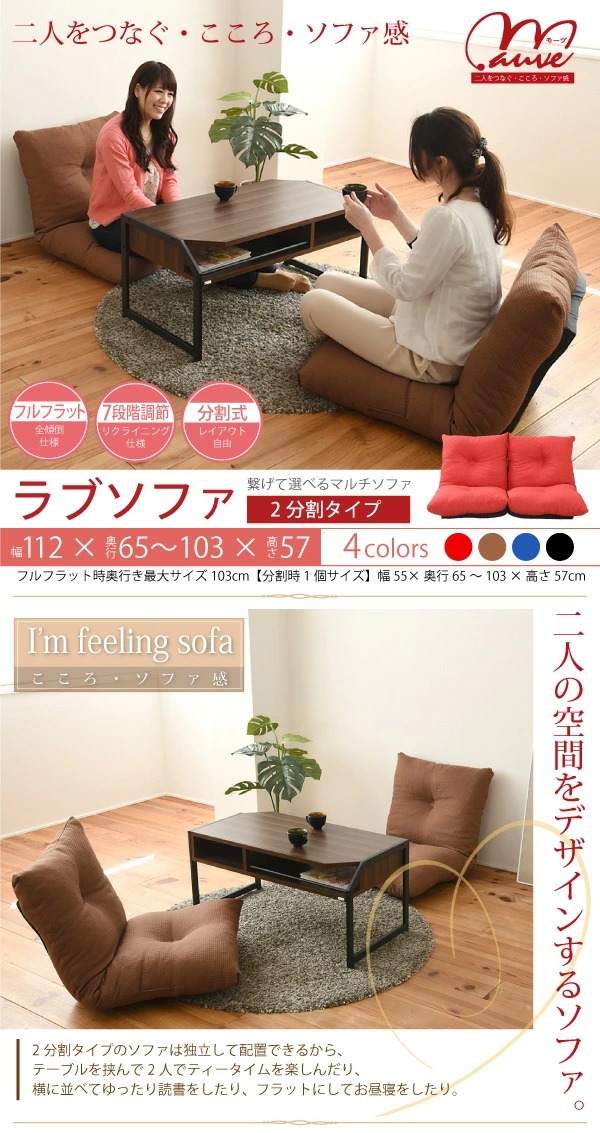 ラブソファ 2分割タイプ フロアソファ リクライニング 座椅子 2人掛け ロータイプ 国産 日本製[ブラック]