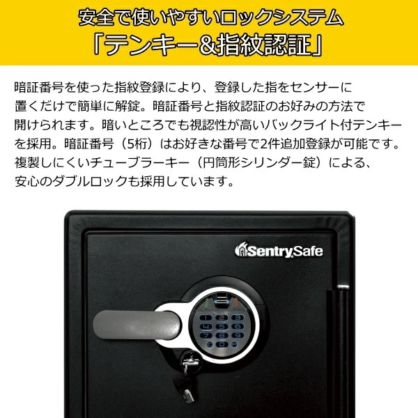 【指紋認証搭載】セントリー 金庫 耐火 耐水 鍵 指紋認証 テンキー ダブルロック 家庭用 オフィス 事務所 JFW123BTL ブラック