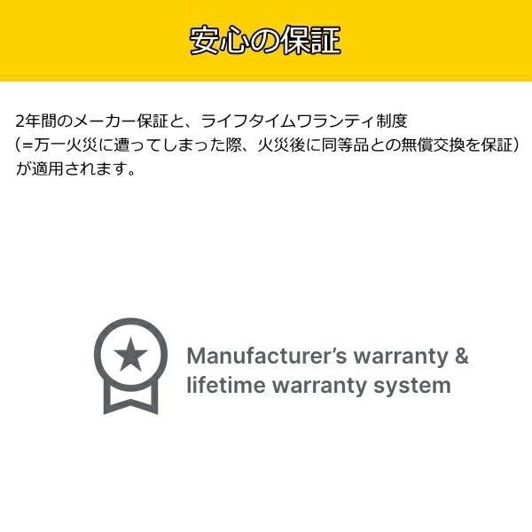 ◎耐水性能 浸水や消火活動時の放水にも対応。火災後の水濡れリスクからも