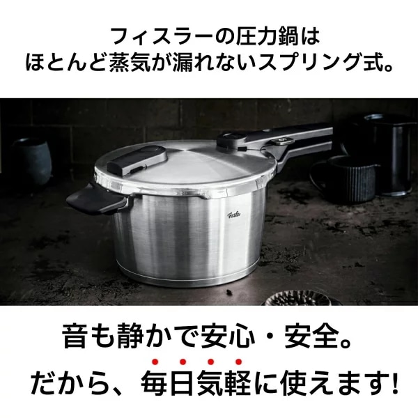 --------------------------------------------------------------------------------------------------- 蒸気が少なく音も静かなフィスラーの圧力鍋