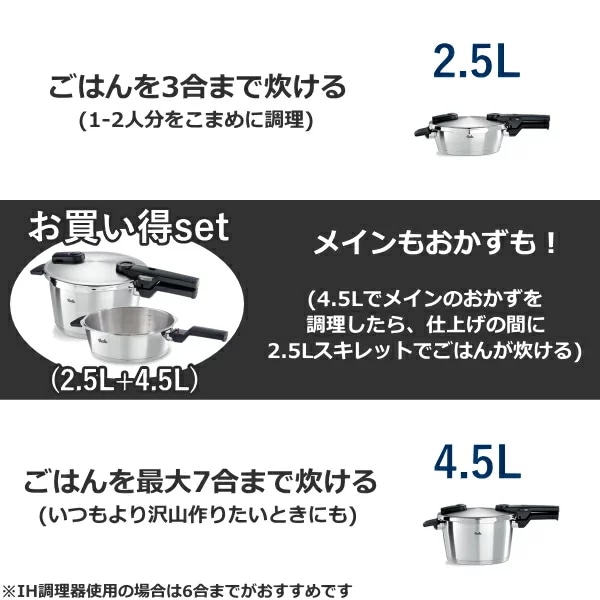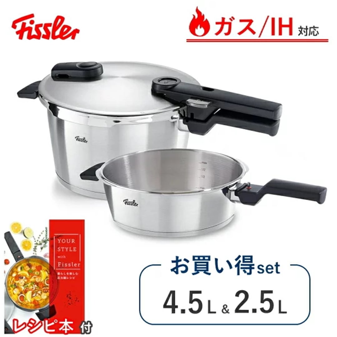 フィスラー 圧力鍋 602-410-11-000 ビタクイック プレミアム セット 4.5L + スキレット 2.5L IH ガス火 対応 レシピブック付 Fissler 2段階圧力設定 高圧 低圧 鍋 10年保証