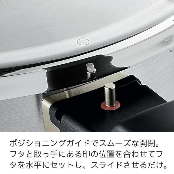 フタにはポジショニングガイドがついていてスムーズな開閉。