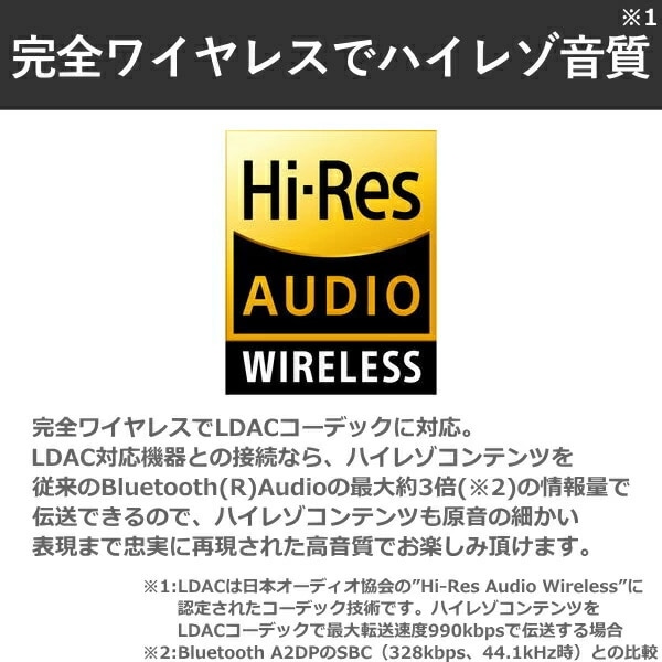 ◎ワイヤレスでもハイレゾ音質で楽しめる 完全ワイヤレスでLDACコーデックに対応。LDAC対応機器との接続なら