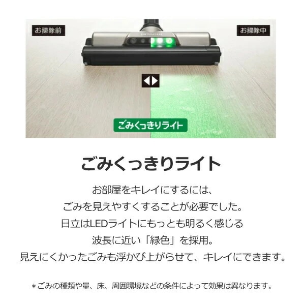 ■ごみくっきりライト 緑色LEDライトで、見えにくいごみも浮かび上がらせます。