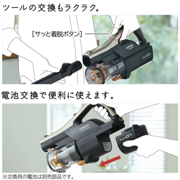 【軽量】日立 掃除機 パワかるスティック コードレス 自走式 ハンディ ゴミ捨て簡単 スタンド付き PV-BL50L(N) ライトゴールド PVBL50L HITACHI 日本製 コードレス掃除機 軽い 布団 ハンディクリーナー からまないブラシ お手入れ簡単 PV-BL50L-N